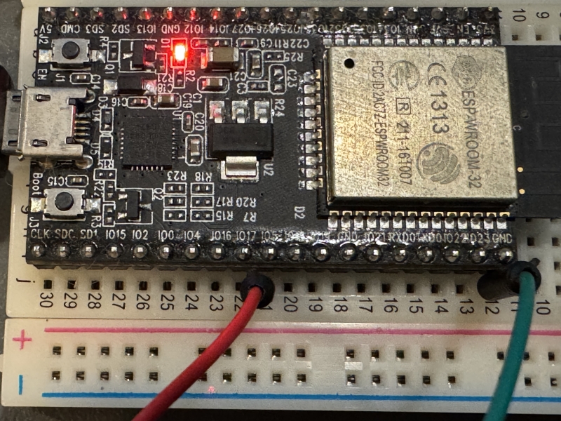 今回はESP32のDev Boardを使用した。これはUSBシリアルと、ダウンローダ用の回路が載っている(同等の回路を用意すれば自作も可能)。