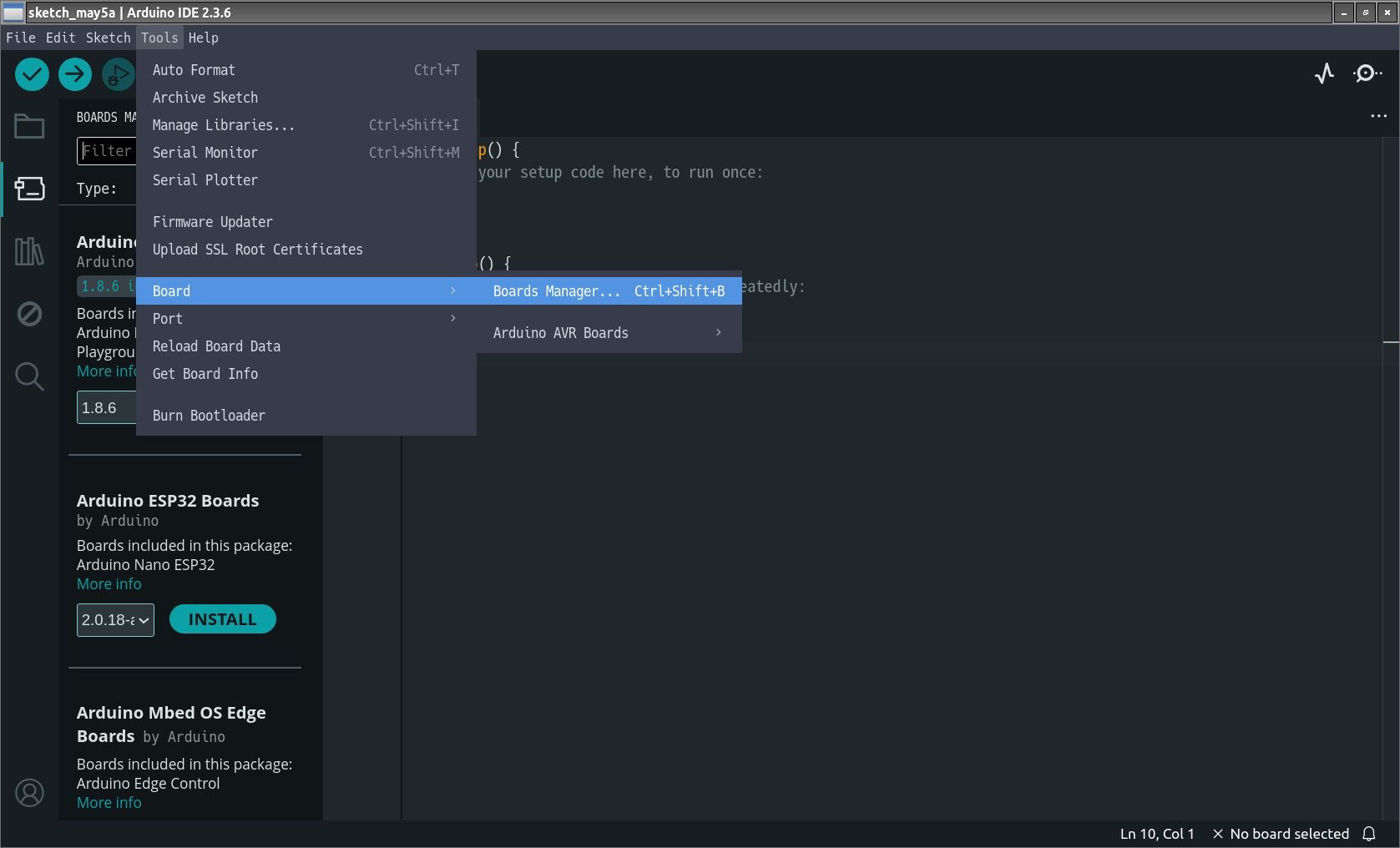 Tools → Board → Boards Managerを開く。