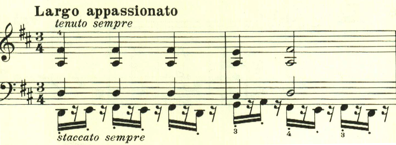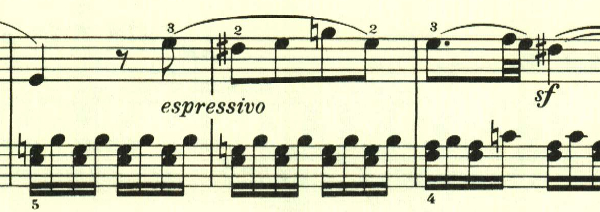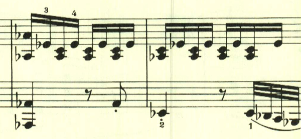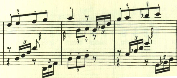 半音階とスタカートが印象的なパッセージ。全曲を通じて繰り返し用いられる。