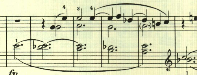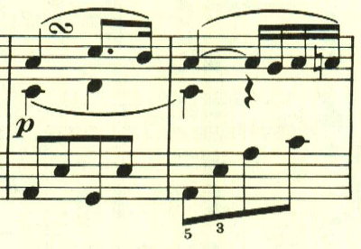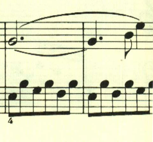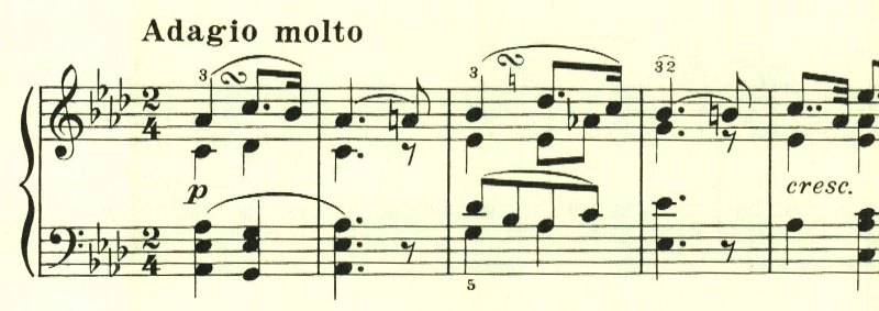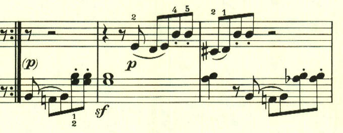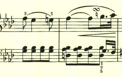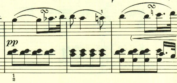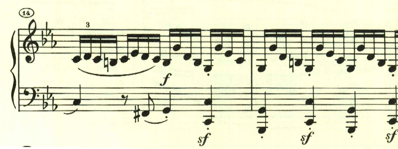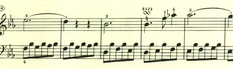 2つ目のテーマは対照的な変ホ長調だが、スタカート主体の雰囲気が残されている。