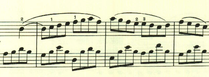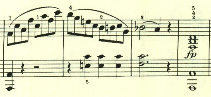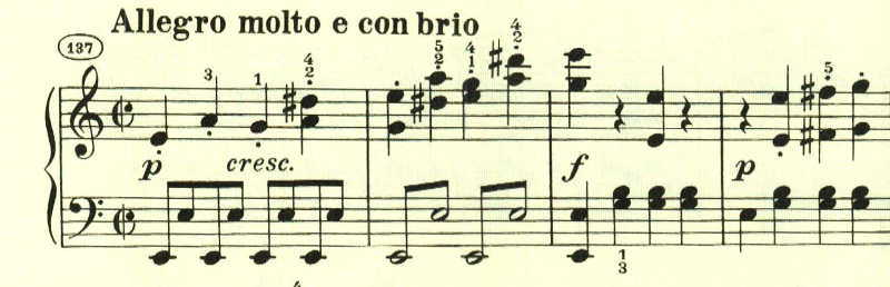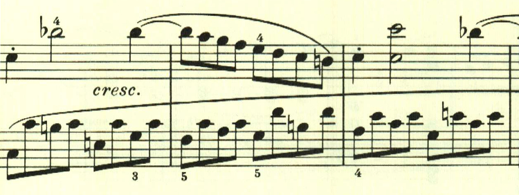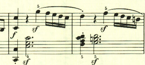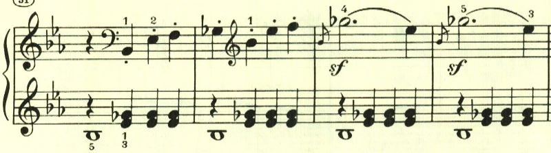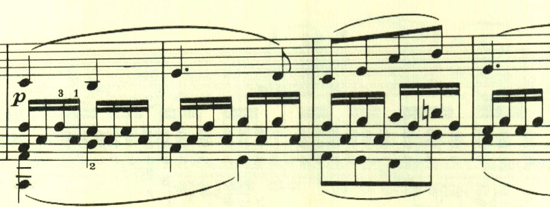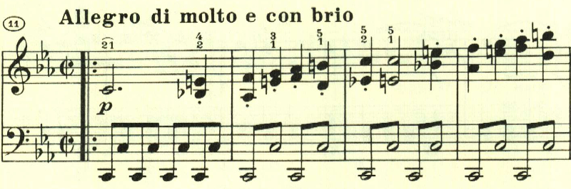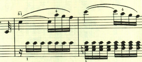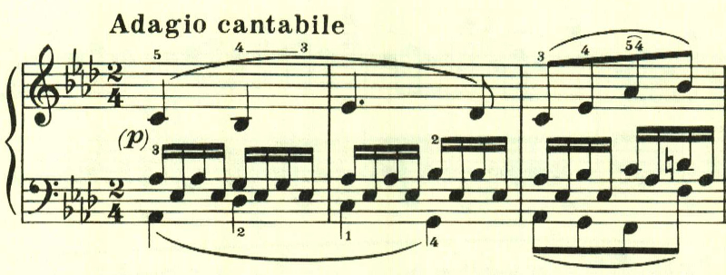 スケール主体の最初の主題と異なり、アルペジオ主体の主題。