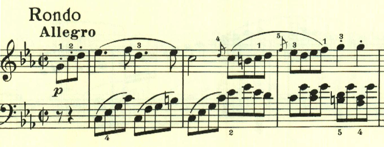 第3楽章はロンド。初期の頃に何度も試みられていた様々なテーマを出現させる構成が結実している。この曲はまた緩急を効果的に使うことに成功している。