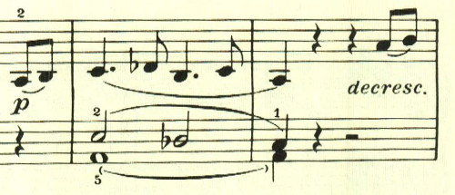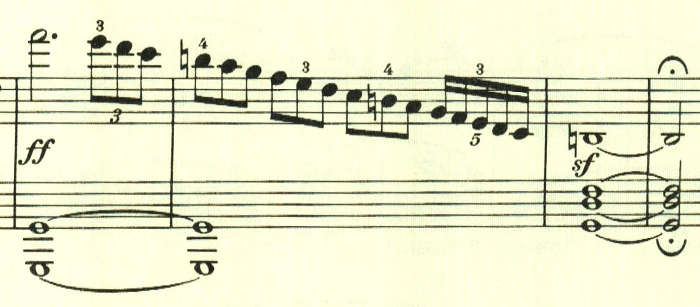 再現部を経て、最後にもう一度序奏が現れた後に、最初のテーマが奏されて劇的に終わる。