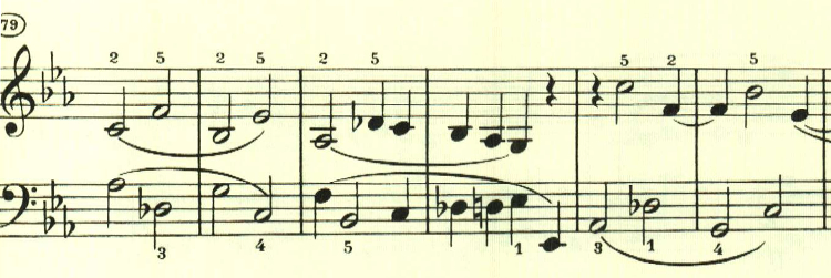 ここでは最初の主題の後半部分が展開される。