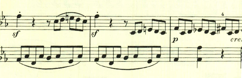 展開部が始まり最初のテーマが展開される。