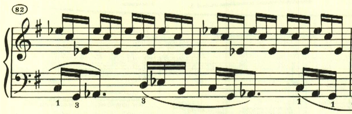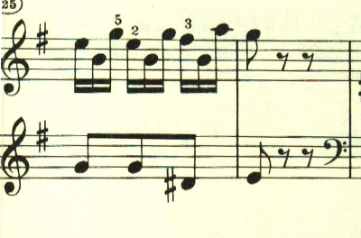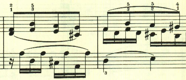 最初のテーマはスケール主体で、次のテーマはアルペジオ主体。