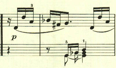 展開部は、最初のテーマが短調で現れる。