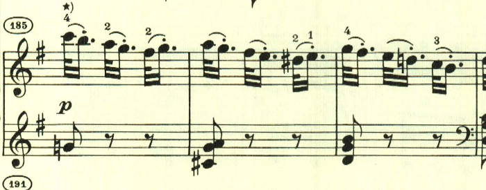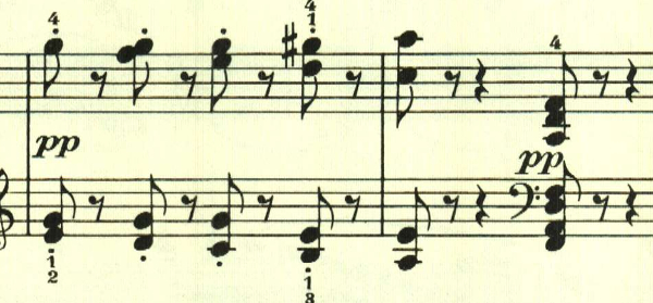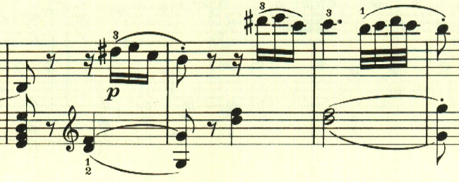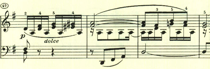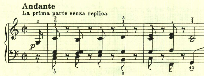再現部は、一通り提示部の内容が繰り返された後、最初のテーマが再度現れて靜かに終わる。