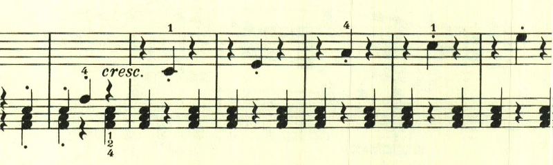非常に単純なアルペジオだた、曲全体で繰り返し使用される。