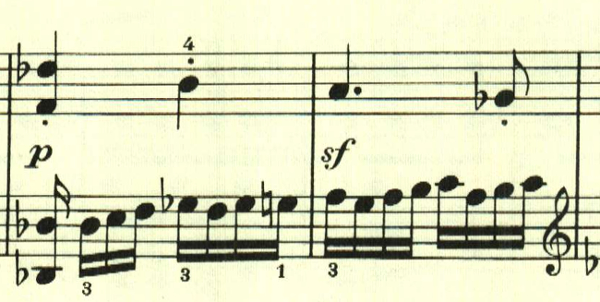 ここで左手に現れるテーマは、最初のテーマの変形と思われる。