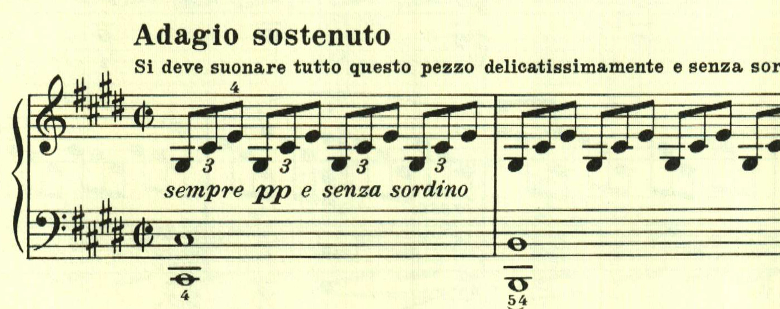 ベートーヴェンのピアノ・ソナタの中で最も有名な曲の1つ。アルペジオ主体で明確なメロディが無く、強いて言えば左手の進行がメロディらしき存在。