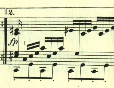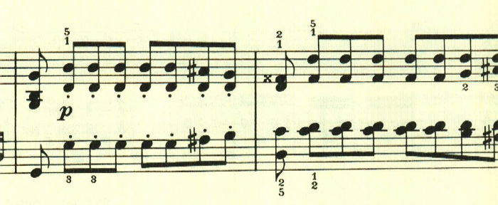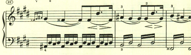 曲は、特に大きな展開もなくずっと同じ雰囲気が続く。最後は左手に同じ音型が現れる。