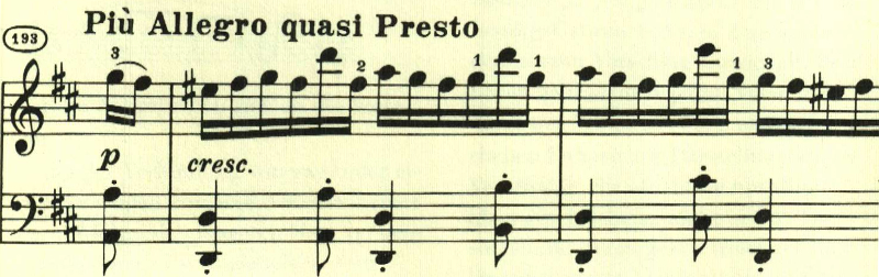 最後に終わりを告げるPrestoが現れるが、左手にはやはり最初のテーマが登場する。