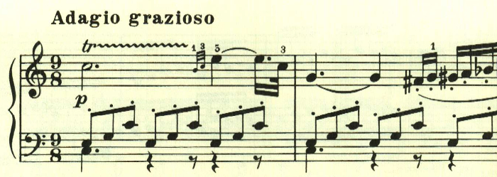 第2楽章は、トリルと速いパッセージが特徴的な楽章。