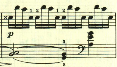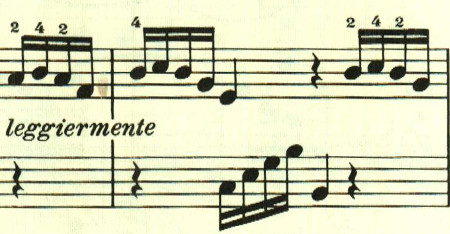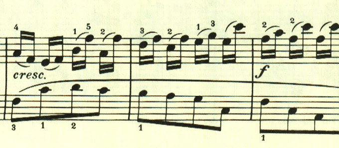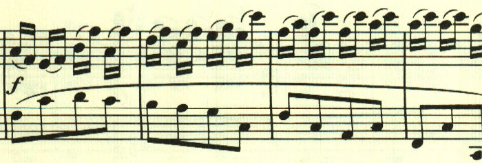 もう1つは、16分音符2つがスラーでつながった音型。この2つが自由に展開される。