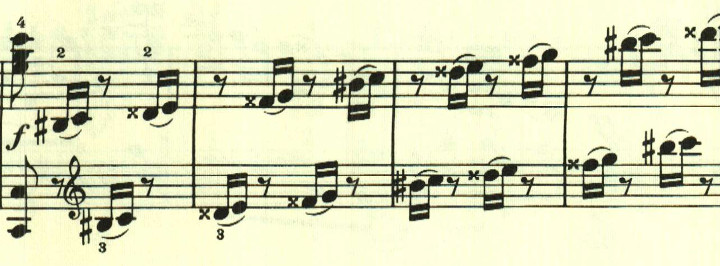 曲は自由な構成だが、この音型が何度も使用されるため、不思議なまとまりを感じさせる。