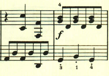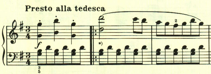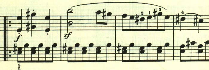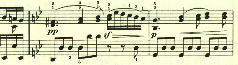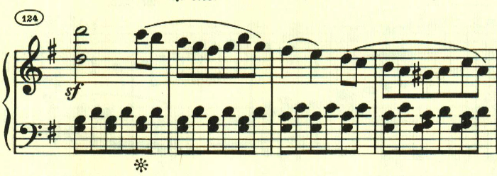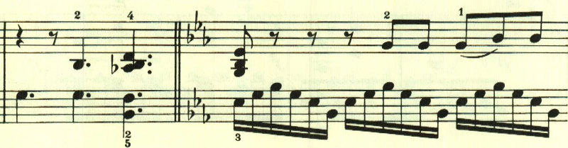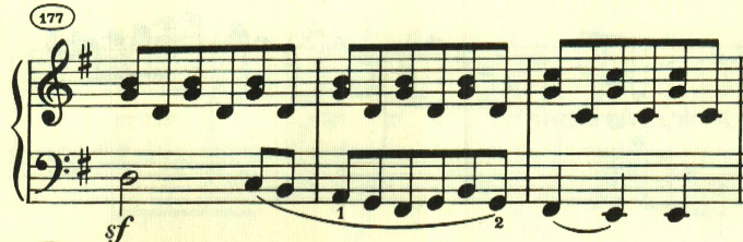 再現部の後に終わりを告げるパートがあり、左手で最初のテーマが奏される。
