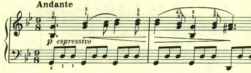 三部形式。長い階段を登っていくかのような、あるいは人生の苦悩をつづるかのようなテーマで始まる。