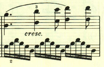 中間部は左手で流れるような16分音符が奏され、夢の中のような、あるいは暖かな風が吹いているかのような場面となる。
