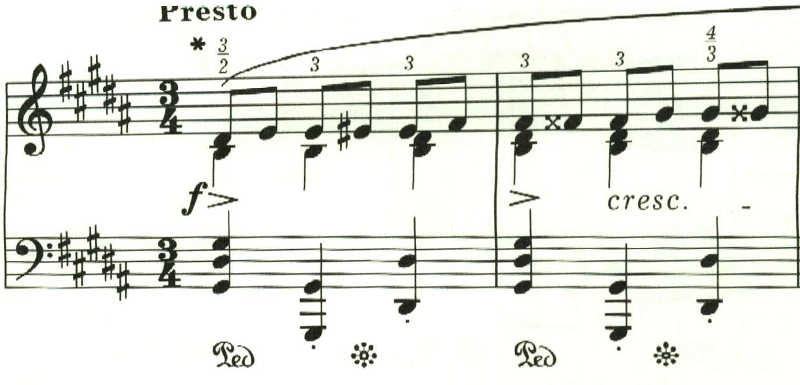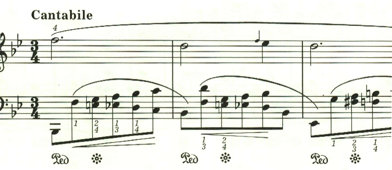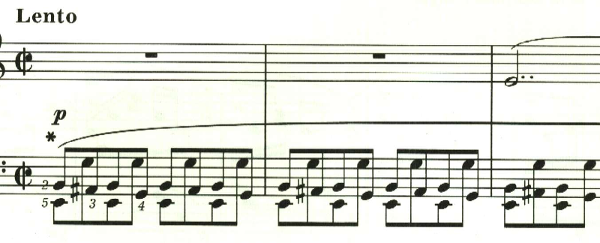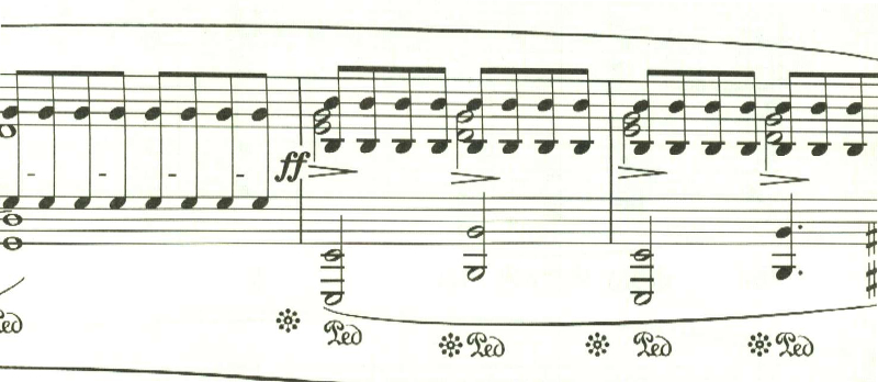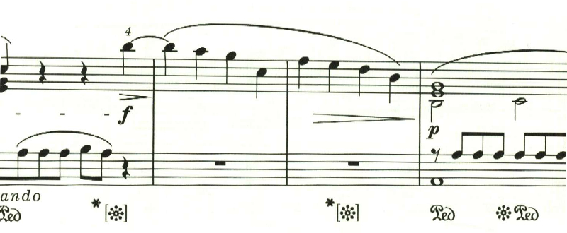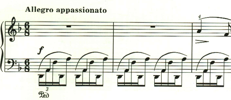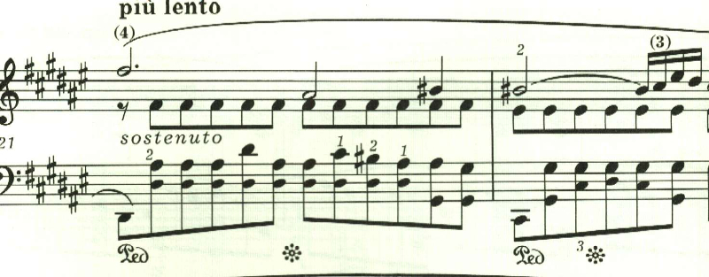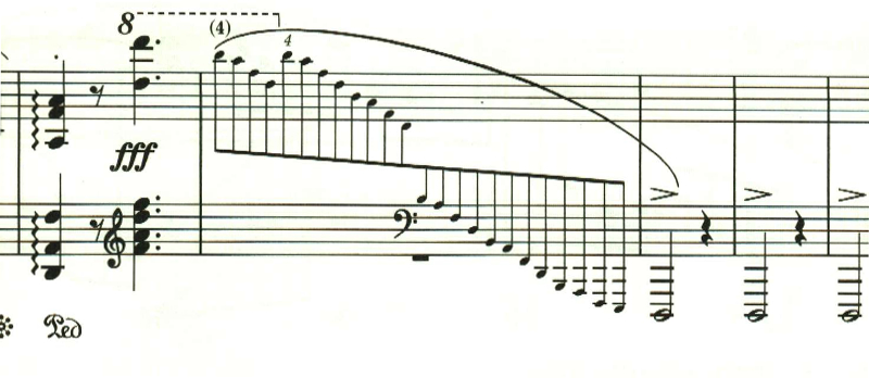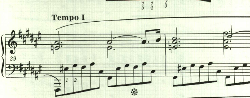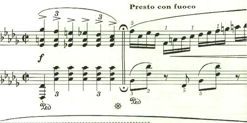 最後に最初のテンポに戻る指定。しかし、ここは曲想的には緊張感が高まっているため、最初のテンポよりも速めに弾かれることが多いと思われる。