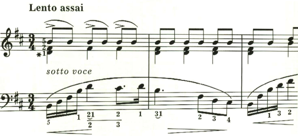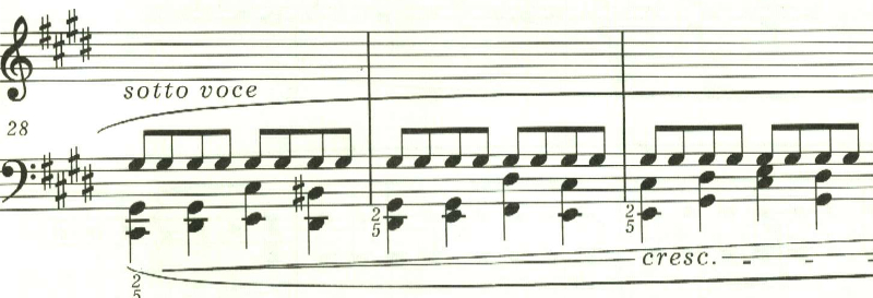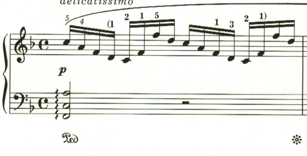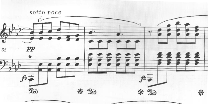 最後は、sotto voce(ささやくように)。左手で同じ低音を小節の頭で繰り返し奏される中、ppで幻想的なメロディが繰り返されて靜かに曲を閉じる。