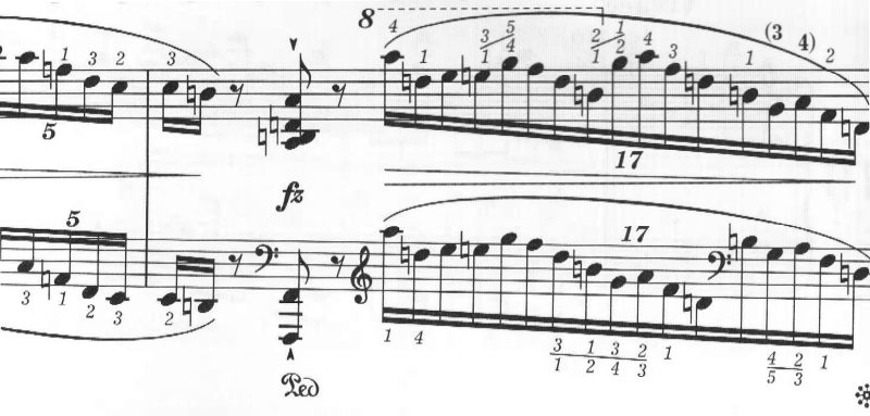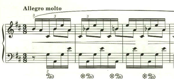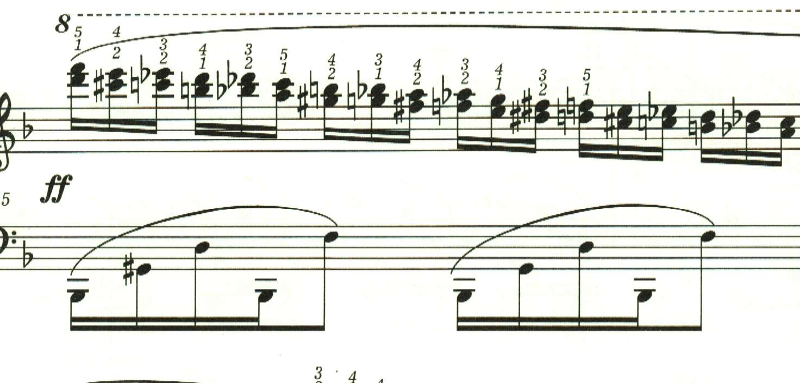 次第に音が増えていき、和音を高速で弾かなければならなくなる。