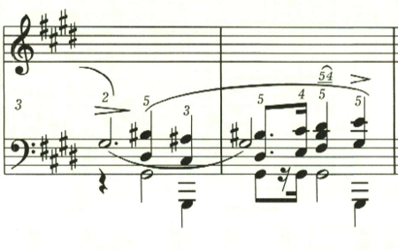 第2のパッセージは、動きのゆっくりとした落ち着いたもの。スラーの最後にアクセントがあり、何か疑問を投げかけているかのよう。