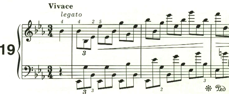 第19曲は、雲の上へと上昇していくかのような軽快な曲。大きな音の跳躍を必要とする。